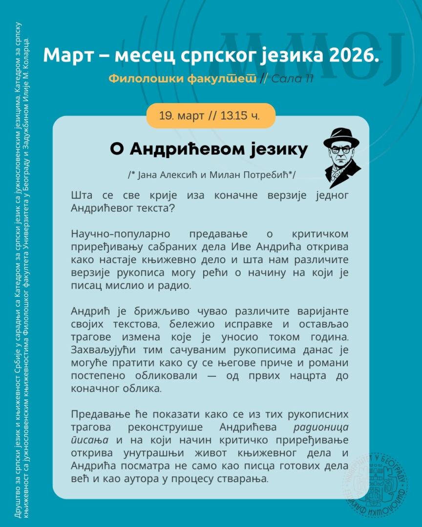 Среда, 18. март 2026, 13.00 – 14.00